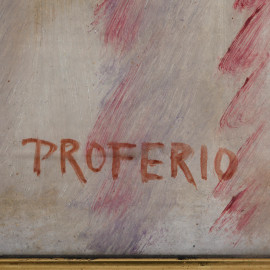Proferio Grossi, Ritratto di uomo, olio su faesite, cm 50x35,5, firmato in basso a destra, al retro firmato e datato 1981, entro cornice