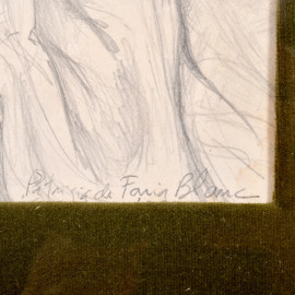Sacra Conversazione, grafite su carta, XX secolo, firmato in basso a destra, cm 49x39 compreso passepartout entro cornice, (tracce di umidità, foxing, difetti)