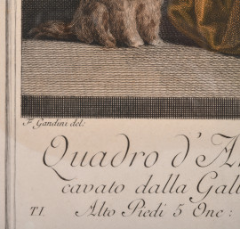 Sacra famiglia con Sant'Anna, stampa da Andrea del Sarto,XIX-XX secolo, cm 54x64 compreso passepartout entro cornice, (lievi tracce di umidità e ondulazioni)