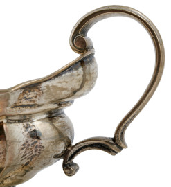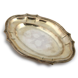 Salsiera e vassoietto in argento 800/000, cm 11,5x23x15,5, peso complessivo gr 520