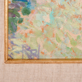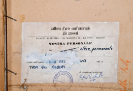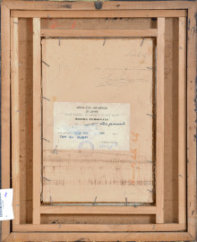 Scorcio boschivo, XX secolo, olio su cartone, cm 30,5x20, siglato in basso a sinistra, entro cornice