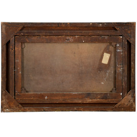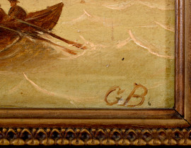 Scorcio di marina olandese, XIX secolo, olio su tela, siglato GB in basso a destra, cm 45x75,5 entro cornice (ondulazioni della tela, lieve craquelure)