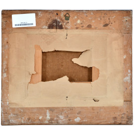 Scorcio di paesaggio con figura, XIX secolo, olio su tela cm 16x20, entro cornice, (ondulazioni della tela, cadute di colore)