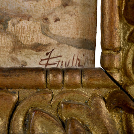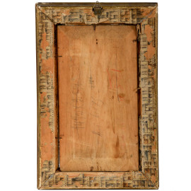 Scorcio di Pompei, XX secolo, olio su tavola, cm 25,5x14, firmato in basso a destra, entro cornice