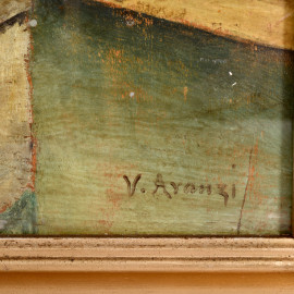 Scorcio di Verona, olio su compensato, cm 42x26, firmato in basso a destra, entro cornice, (fessurazioni del supporto)
