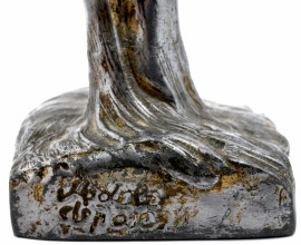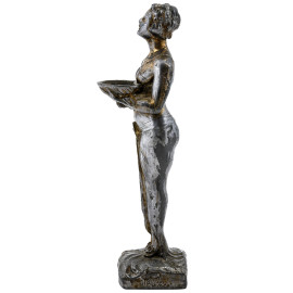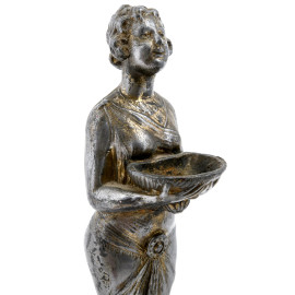 Scultura liberty in metallo argentato raffigurante giovane fanciulla. Francia, XX secolo, altezza cm 24, (segni di usura del tempo)