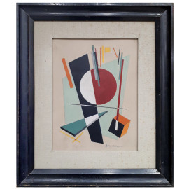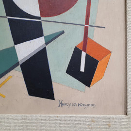 Scuola dell’Avanguardia Russa, composizione suprematista, tecnica mista su tavola, cm 34x26, firmato (Nikolay Yusupov) in caratteri cirillici