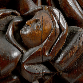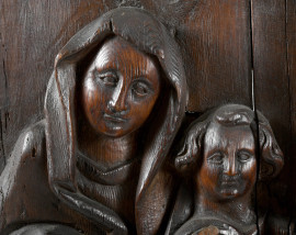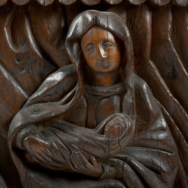 Scuola tedesca del XV - XVI secolo, pannello in rovere intagliato raffigurante scene bibliche, cm 131x101x10, (lievi scalfiture)