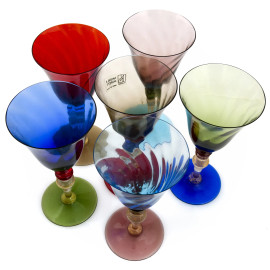 Sei calici Nason&Moretti Murano Mod. Sandra, colore arlecchino, altezza cm 17