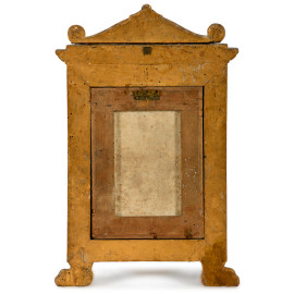 Specchierina in legno dorato e intagliato con piedini ferini, XIX secolo, cm 33x26, (segni di usura del tempo)