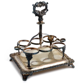 Struttura per oliera in metallo argentato con base e presa cesellata, XX secolo, cm 28x23,5x20, (segni di usura)