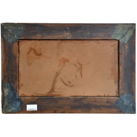 Terrazza con figure, XIX-XX secolo,tecnica mista su cartone, cm 32x55, firmato in basso a sinistra, entro cornice, (ondulazioni e lieve fessurazione del supporto)