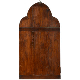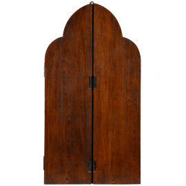 Trittico a sportello con apice polilobato in legno. Pannello centrale raffigurante ad olio Sant'Antonio e pannelli laterali con tralci d'uva a rilievo, XIX - XX secolo, misure aperto cm 96x101; misure chiuso cm 96x50,5; apertura del piano cm 88,5, (usura del tempo)