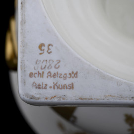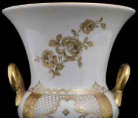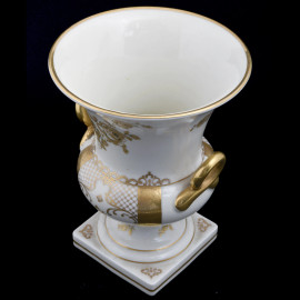 Vaso a cratere stile Impero con decorazioni floreali in oro, XX secolo, altezza cm 21, (lievi segni di usura)