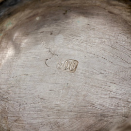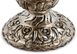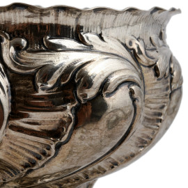 Vaso centrotavola in argento 800/000 cesellato a motivi vegetali, cm 18,5x18,5 ,peso gr 480