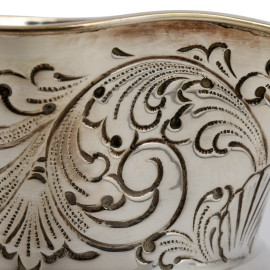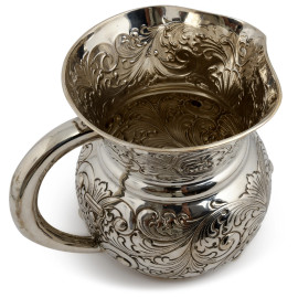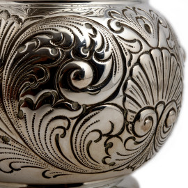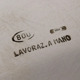 Versatoio in argento 800/000 punzone 1333MI finemente cesellato e sbalzato a volute vegetali, altezza cm 17,5, peso gr 570