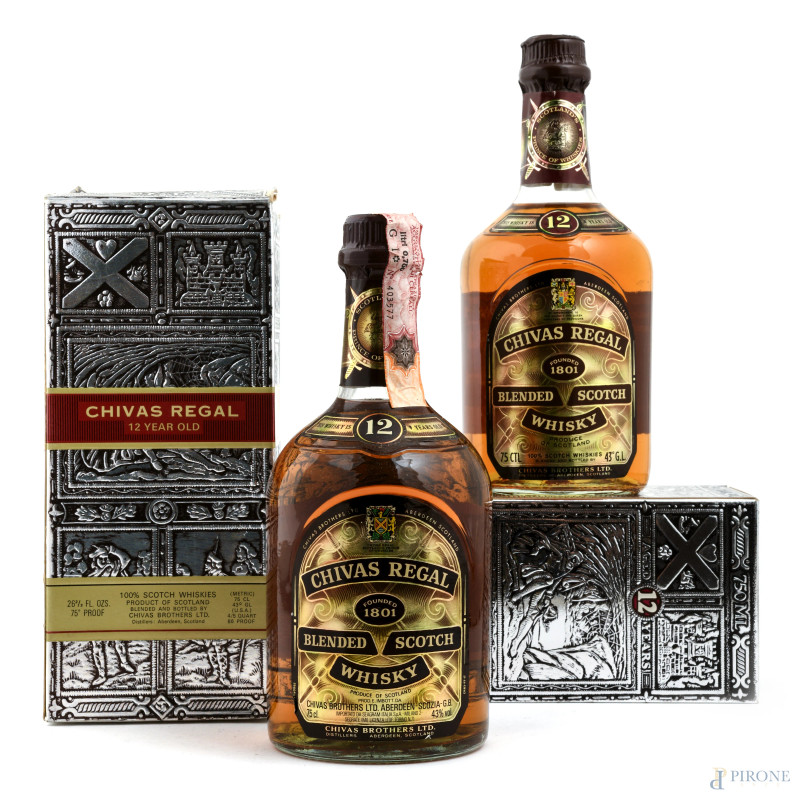 Lotto di due bottiglie di Chivas Regal 12 year old