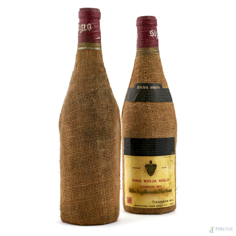 Lotto di due bottiglie di Vino Rioja Siglo, Cosecha, 1969
