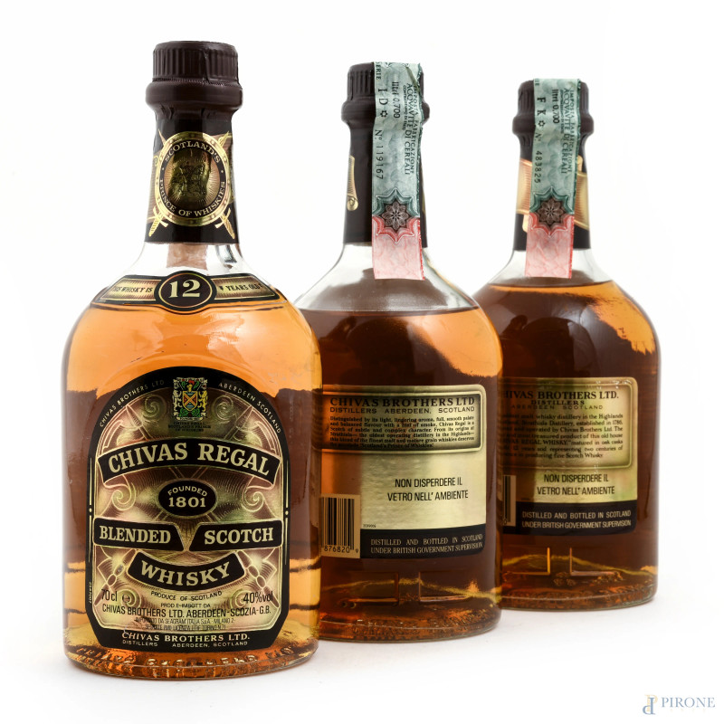 Lotto di tre bottiglie di Chivas Regal 12 year old