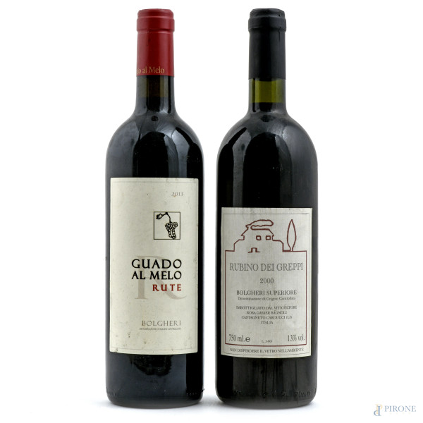 0,752 bts Vino da Tavola 1990 e 1993, 1 bt Bolgheri Rosso Superiore 1998