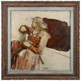 Americo Mazzotta (1941) Figura seduta, olio su tela, cm 70x70, entro cornice