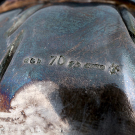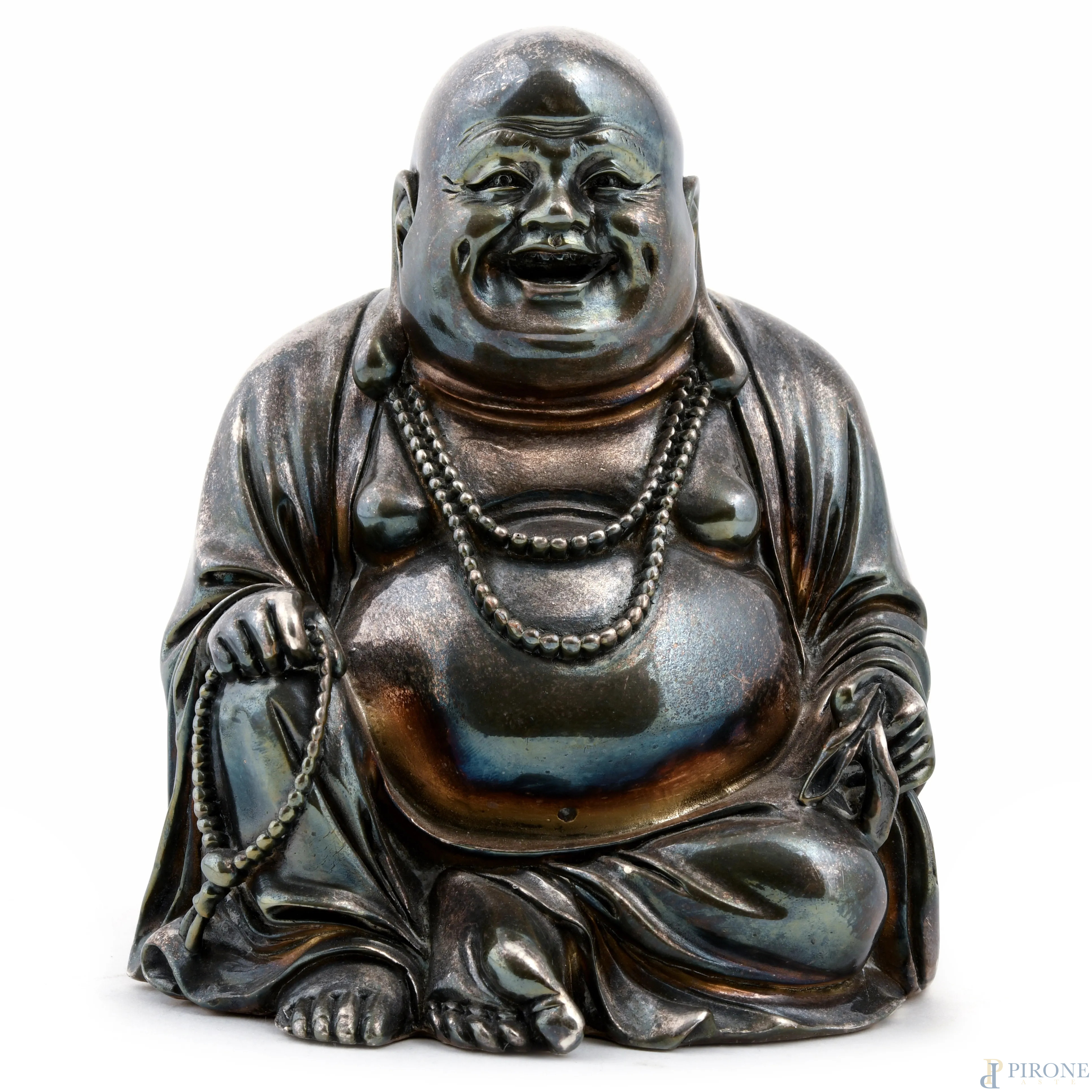 Buddha in metallo argentato, XX secolo, altezza cm 15,5