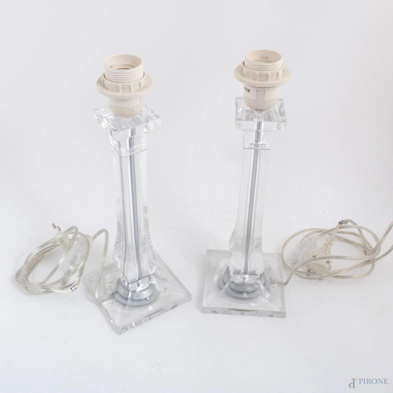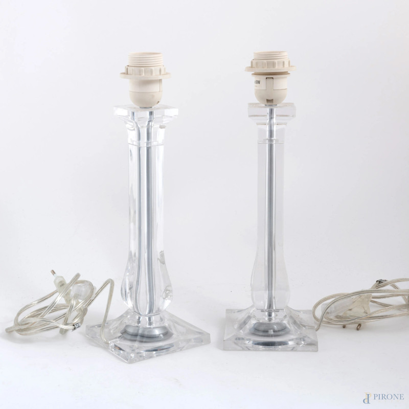 Coppia di lampade in plexiglass, XX secolo, altezza cm 34, (lieve usura del tempo, da revisionare)