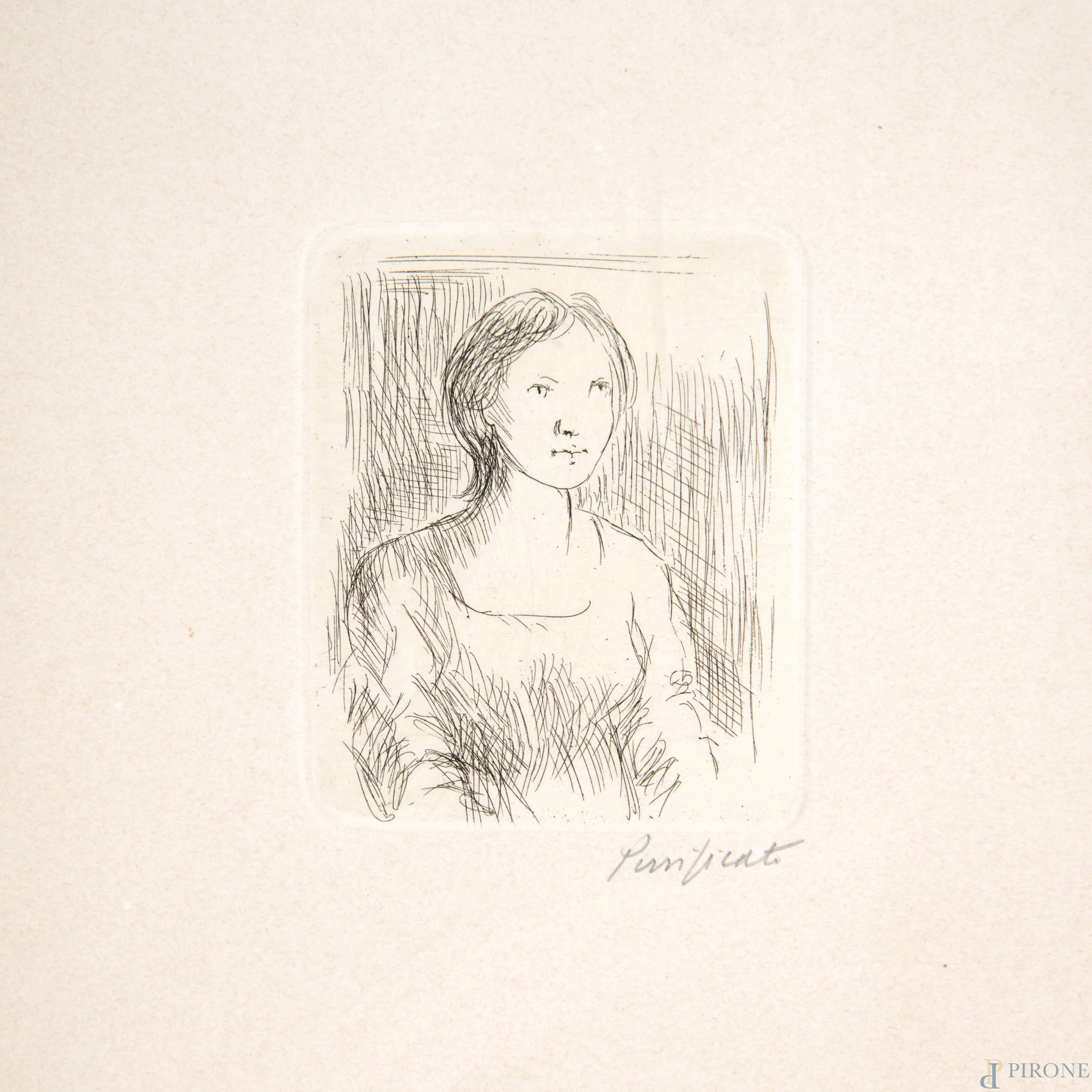 Domenico Purificato, Ritratto di giovane, incisione, cm 40x30 compreso passepartout, firmato a grafite in basso, entro cornice