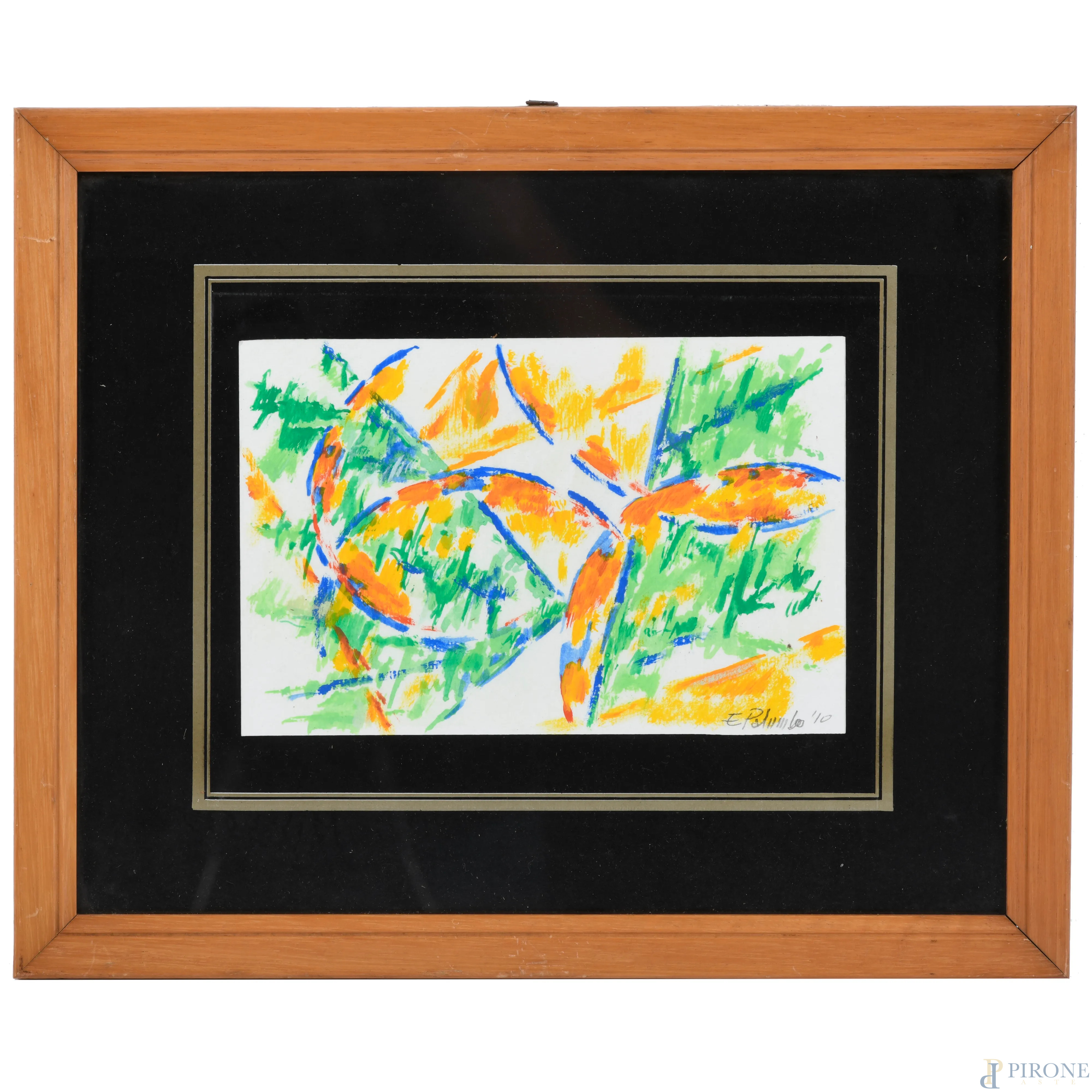 Edoardo Palumbo (1932-2018), Composizione, acrilico su carta, cm 12x19, firmato e datato "10" in basso a destra, entro cornice