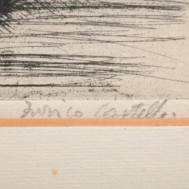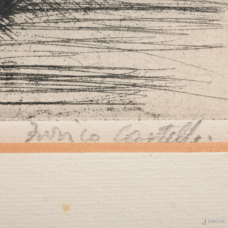 Enrico Castelli (1909-1980), Viale con cipresso, acquaforte, cm 41 x31 compreso passepartout, firmato in basso a destra, entro cornice
