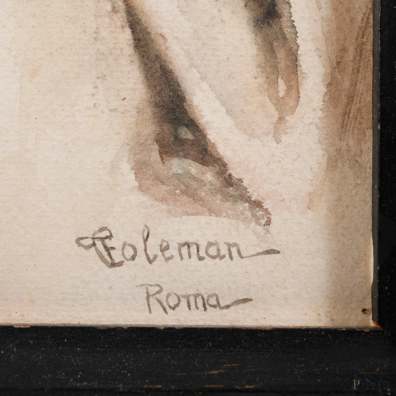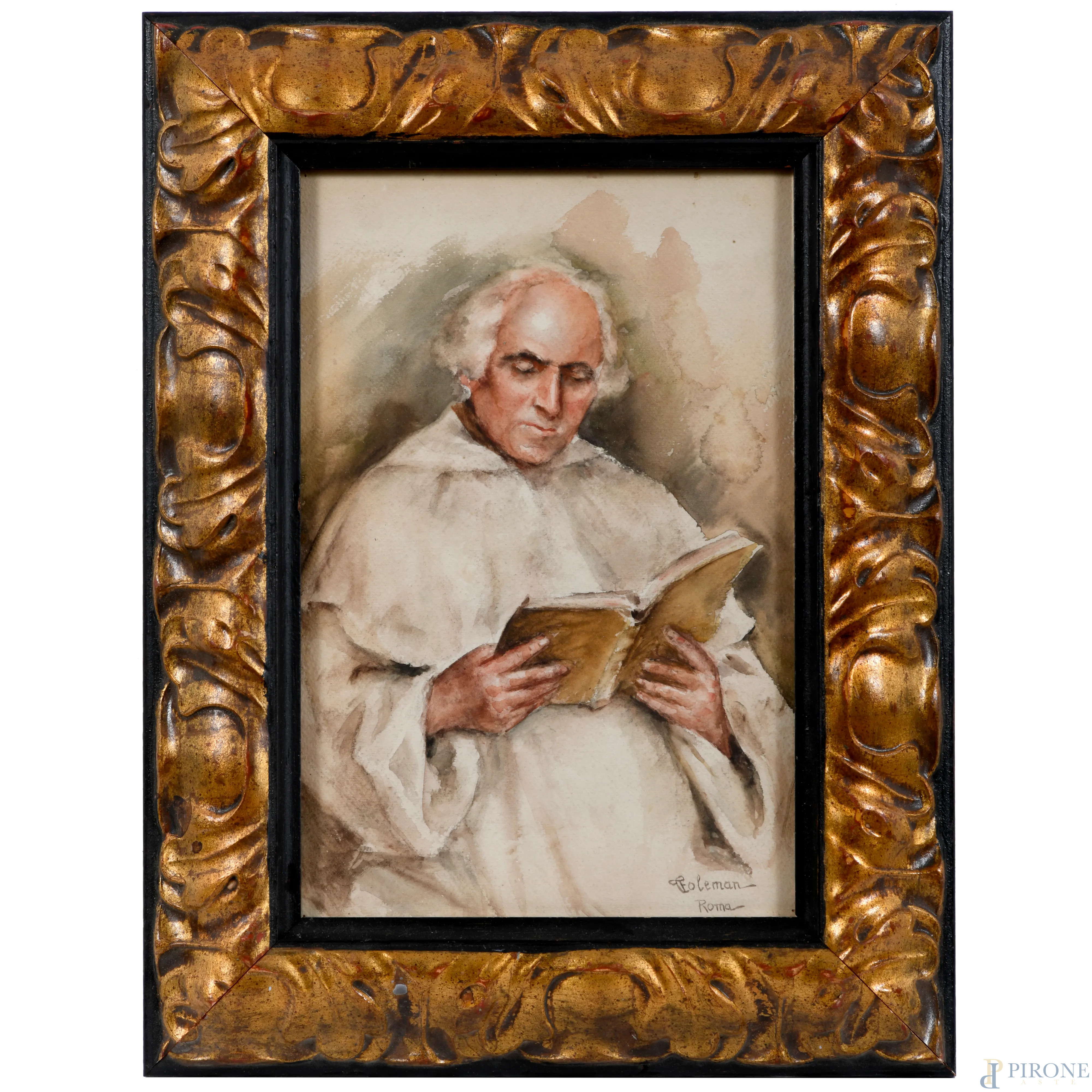 Frate in preghiera, XX secolo, tecnica mista su carta, cm 28x18,5 firmato in basso a destra, entro cornice