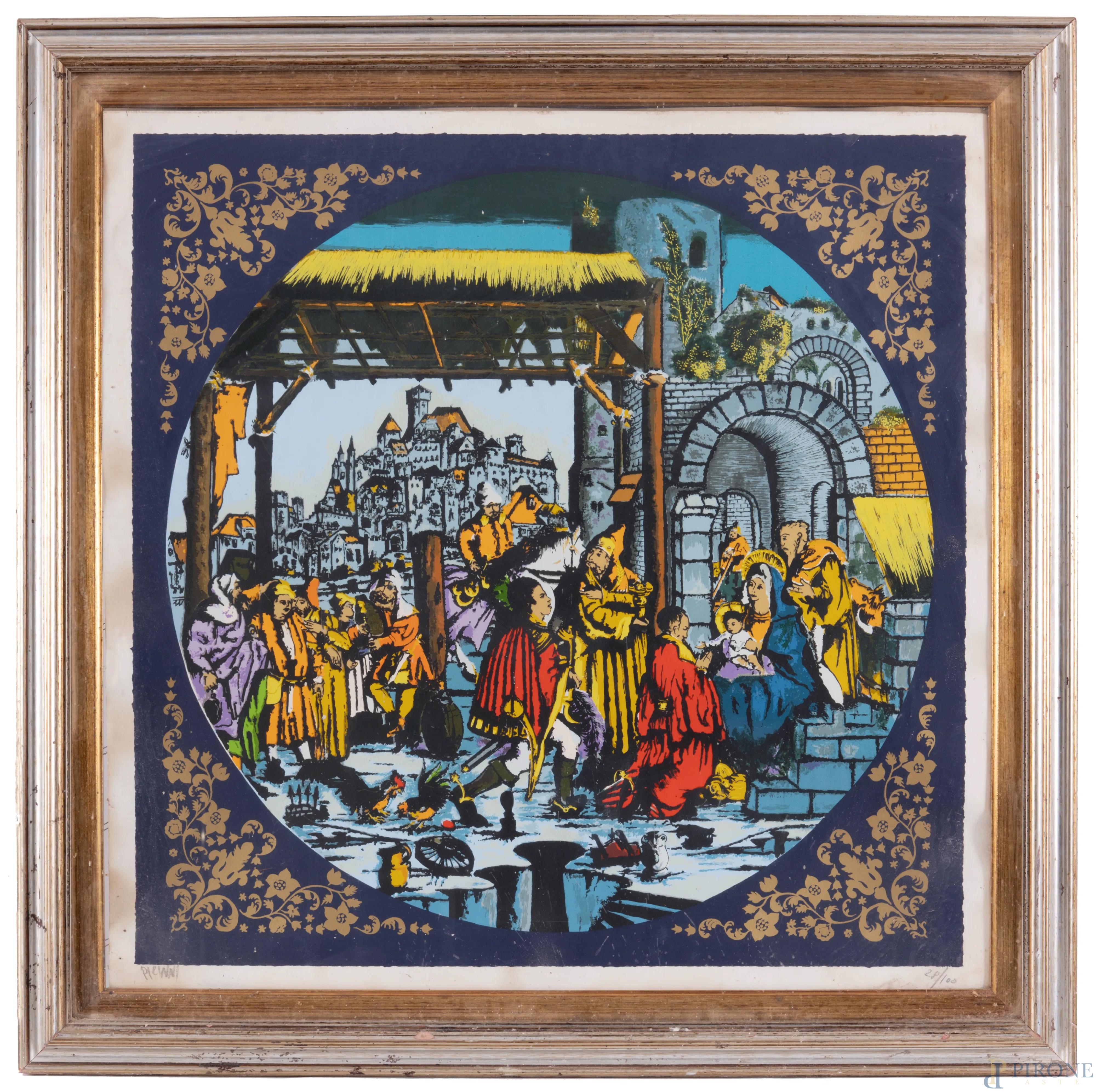 Gennaro Piccinni (1933-2022), Natività, litografia a colori, es. 28/100, cm 68x68,firmata in basso a sinistra, entro cornice (difetti)