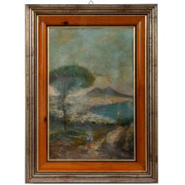 Golfo di Napoli, XX secolo, olio su tavola, cm 41x27, (tavola imbarcata, difetti)