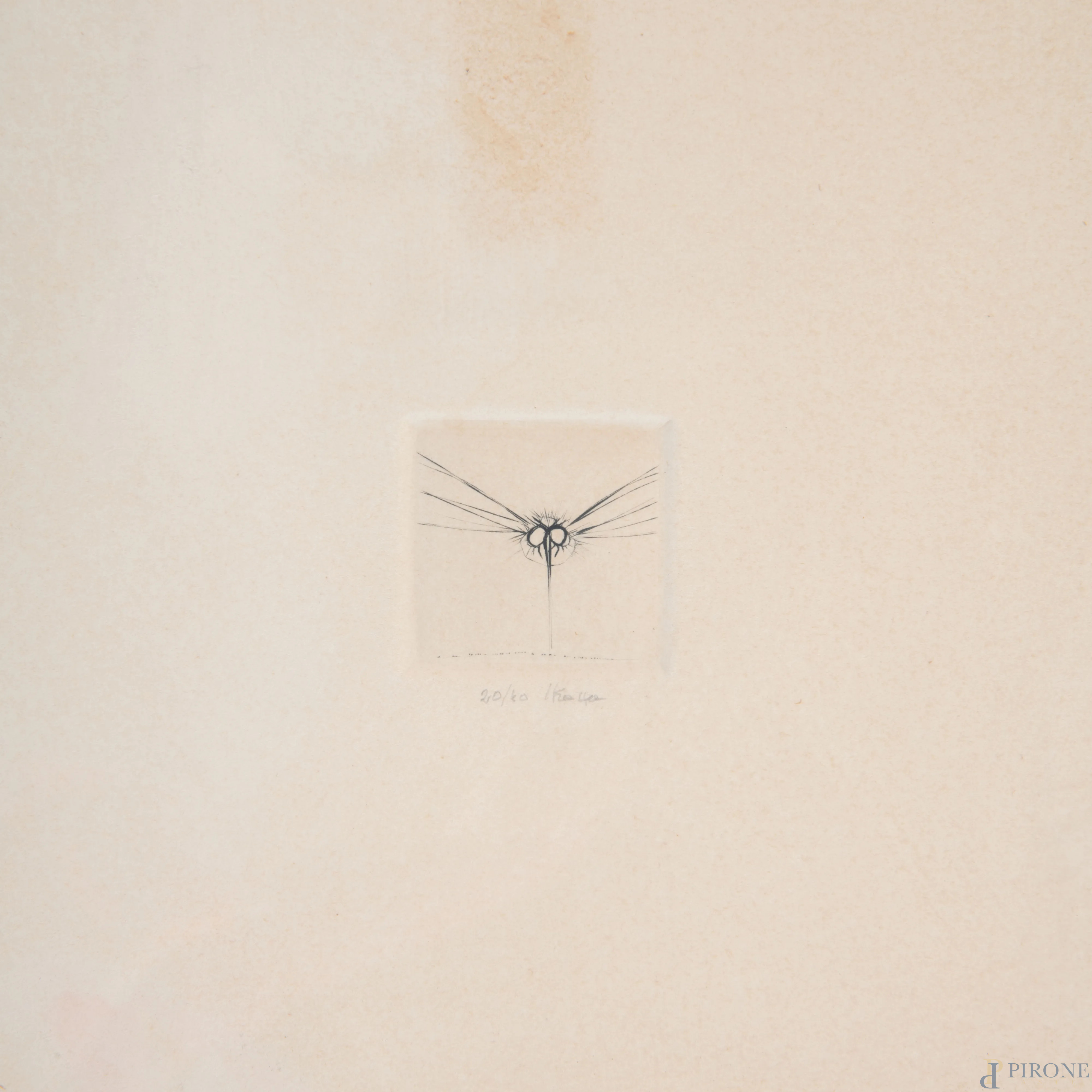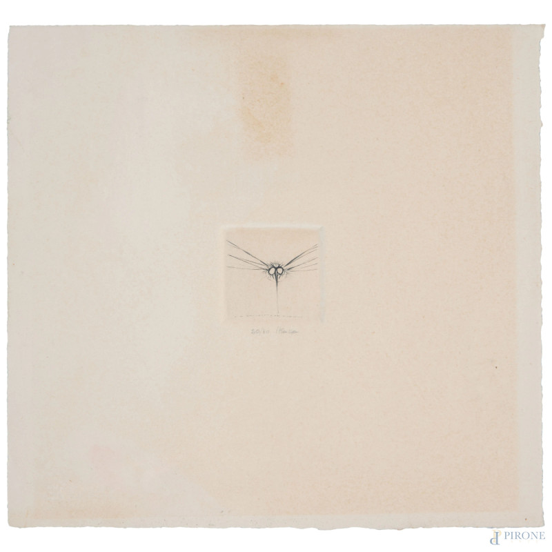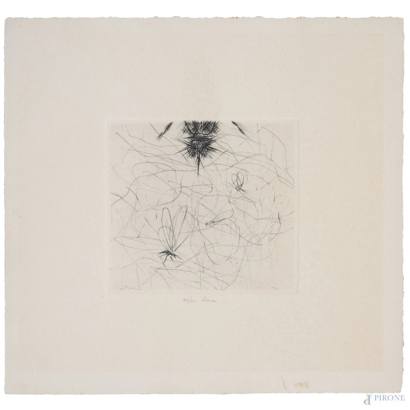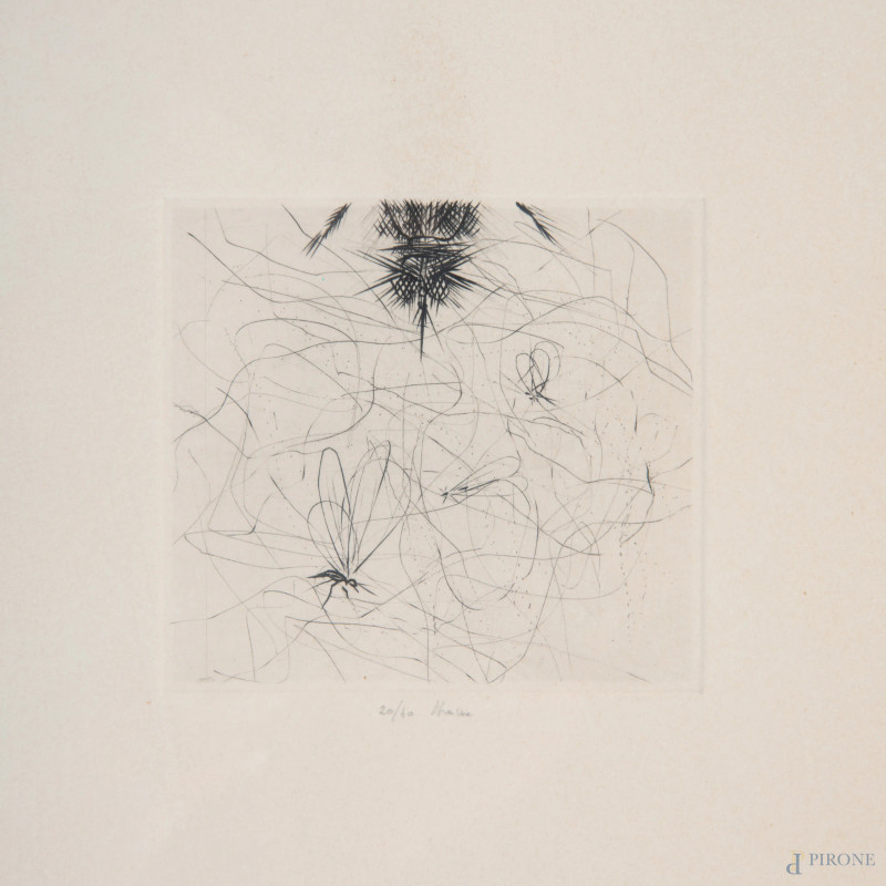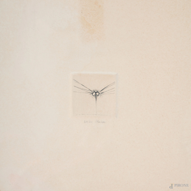 Guido Strazza (1922), coppia di incisioni astratte entro unica cornice, cm20x20 cad., firmate in basso es. 20/40