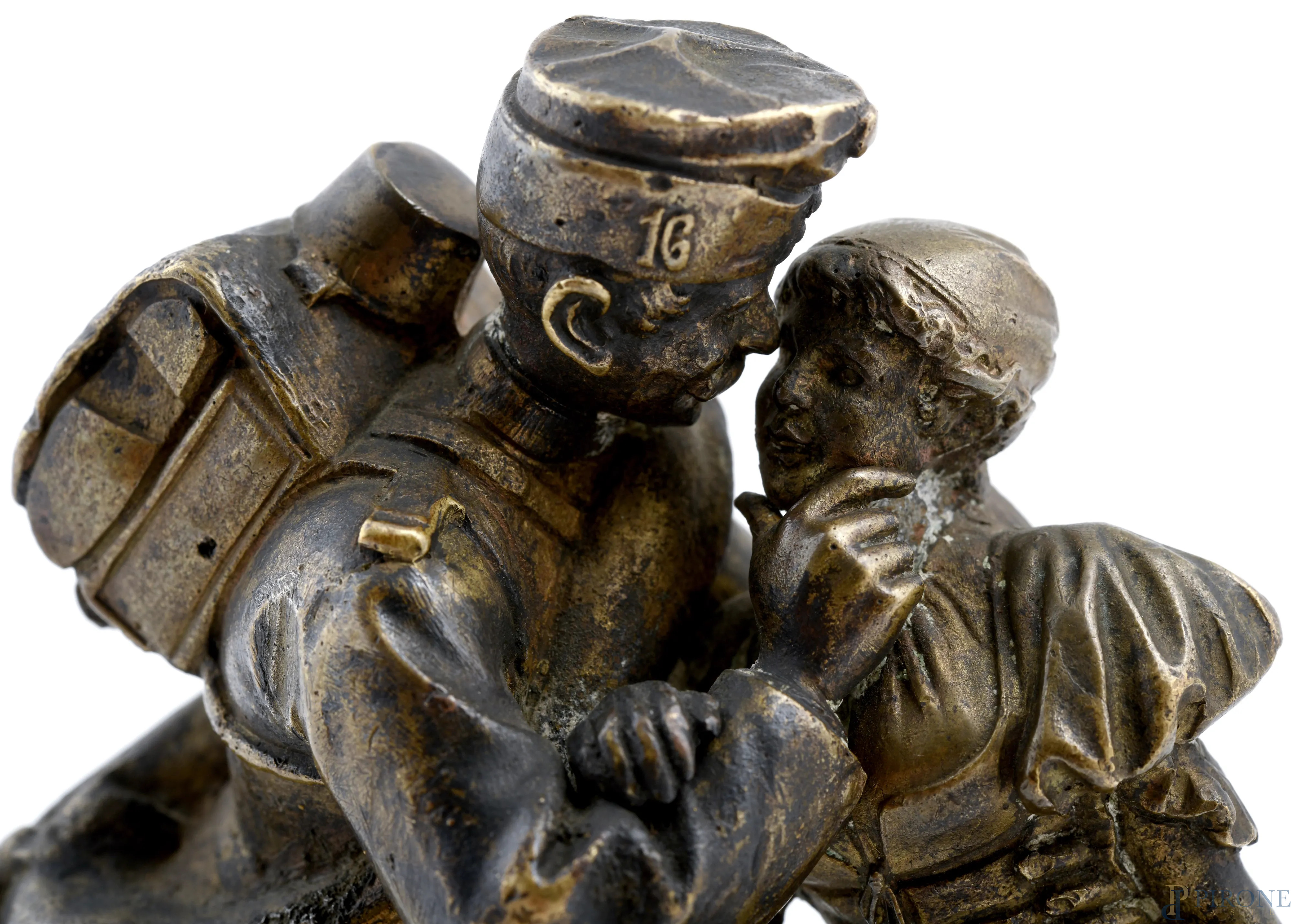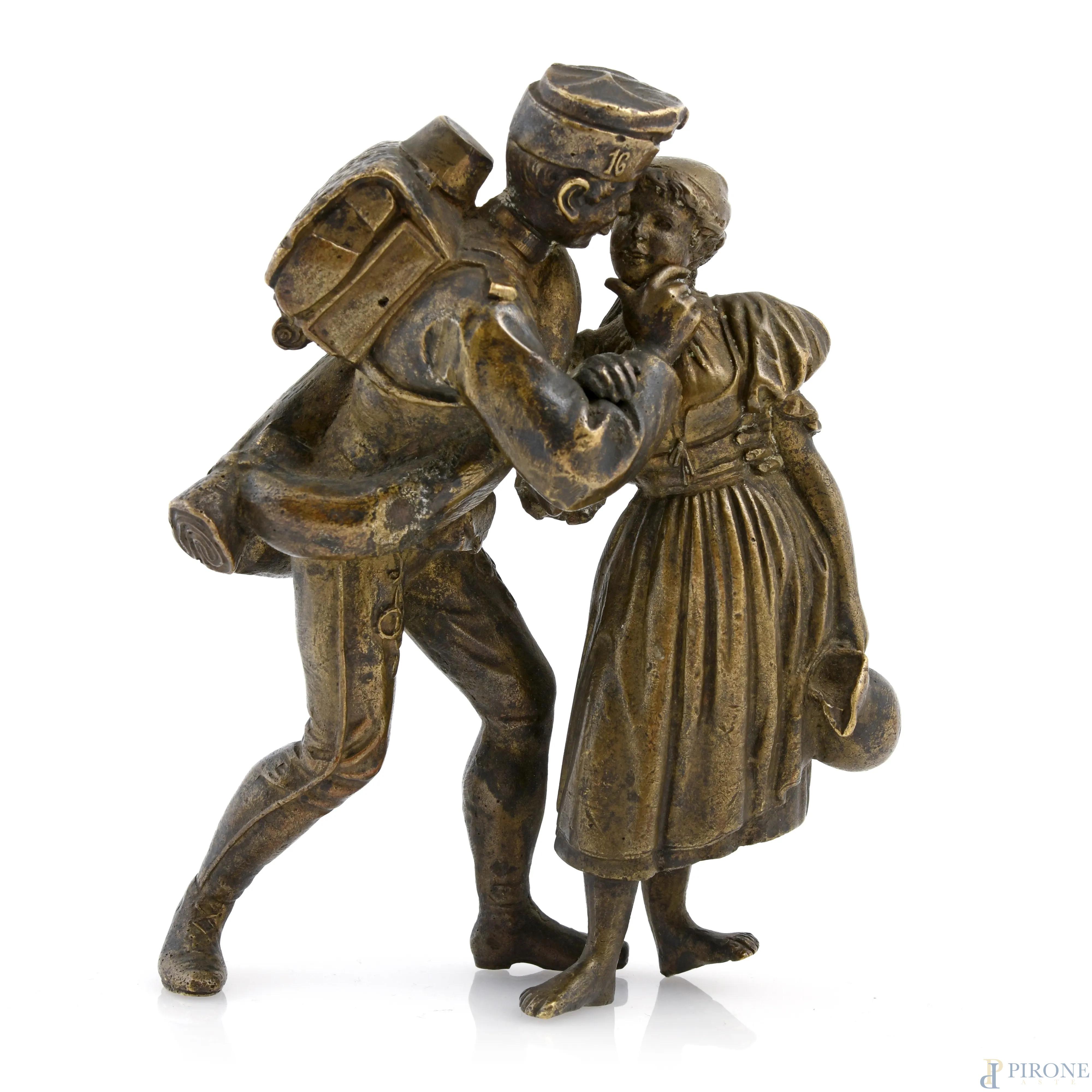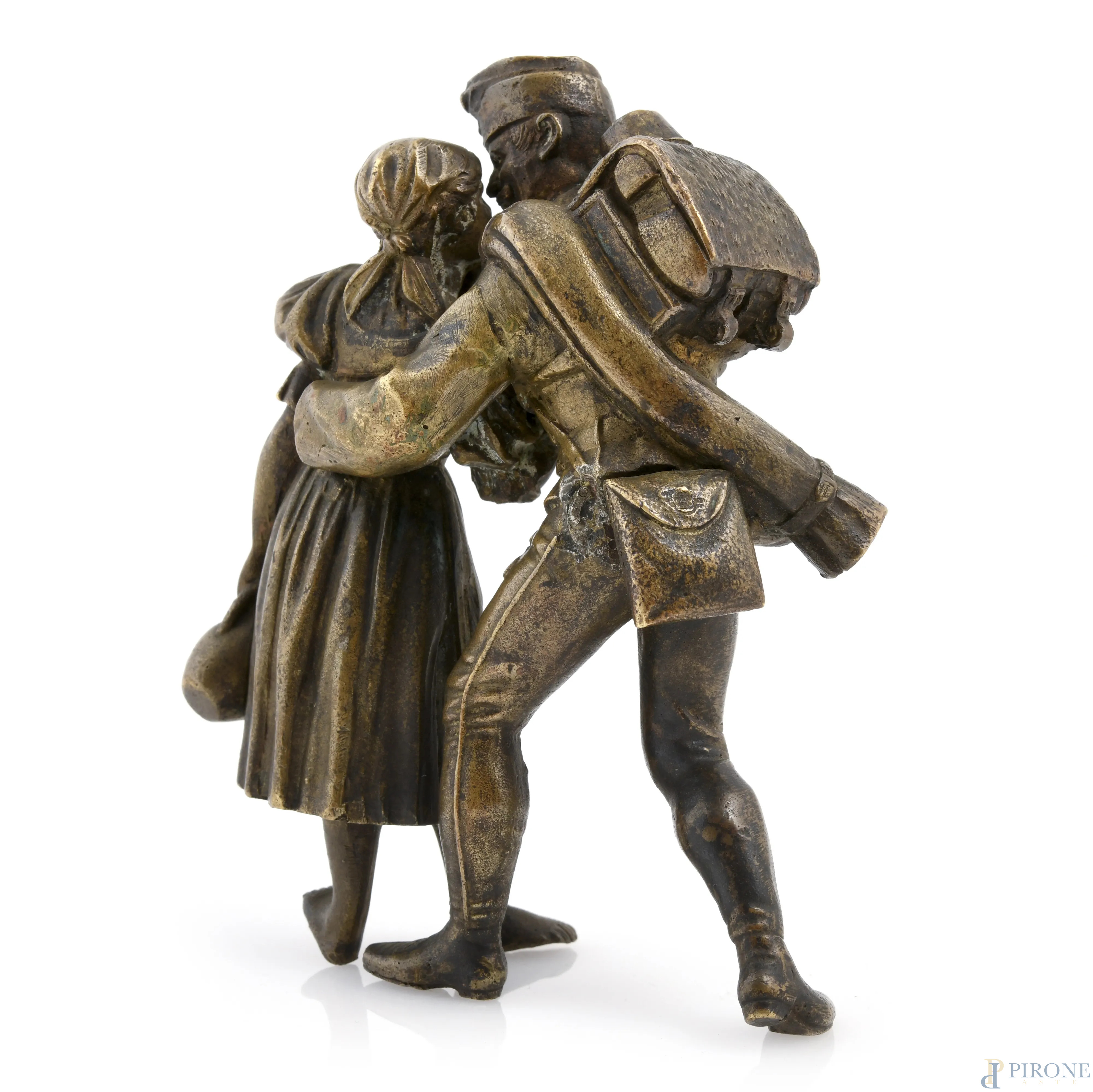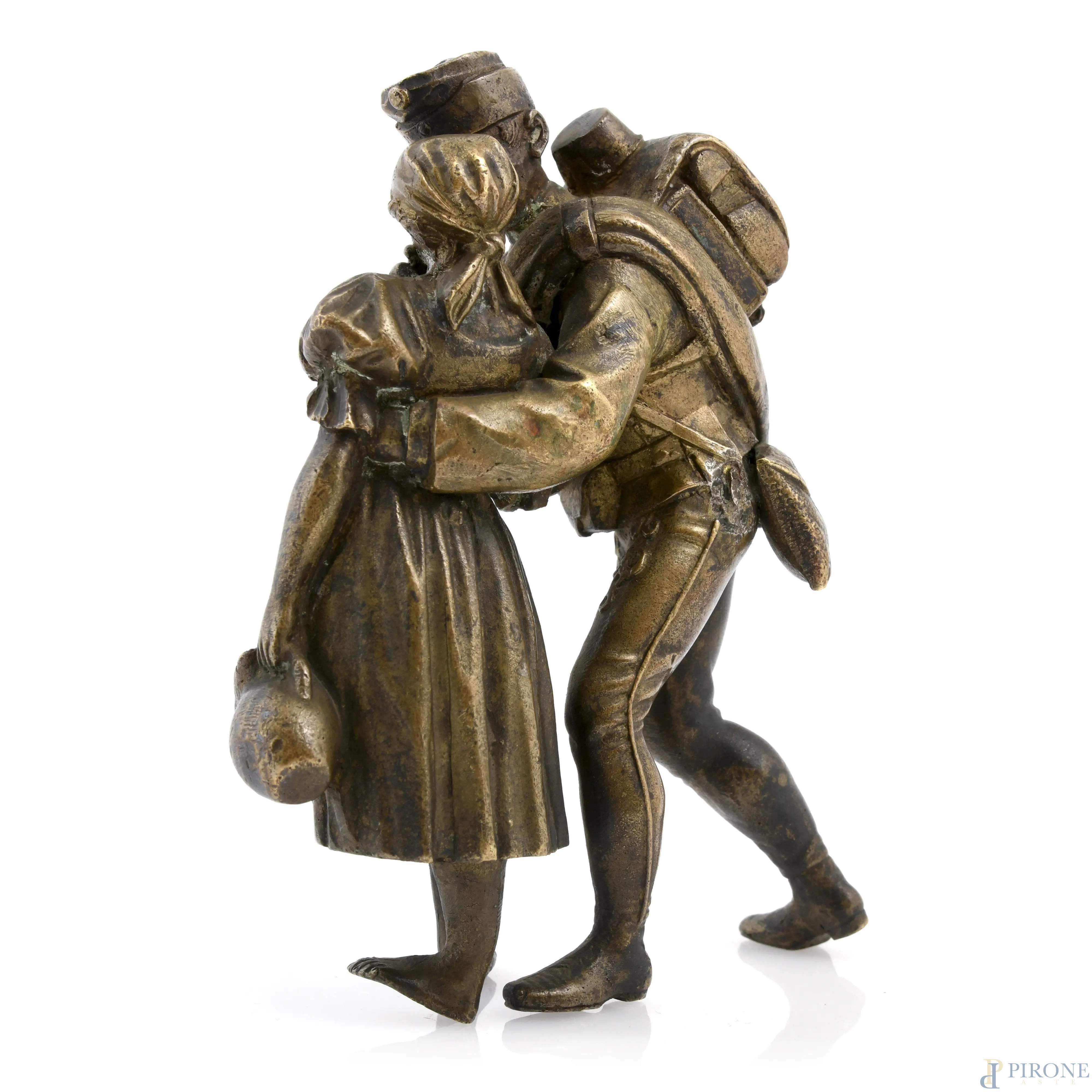 Il ritorno del soldato, XX secolo, scultura in bronzo, altezza cm 13, (segni di usura)