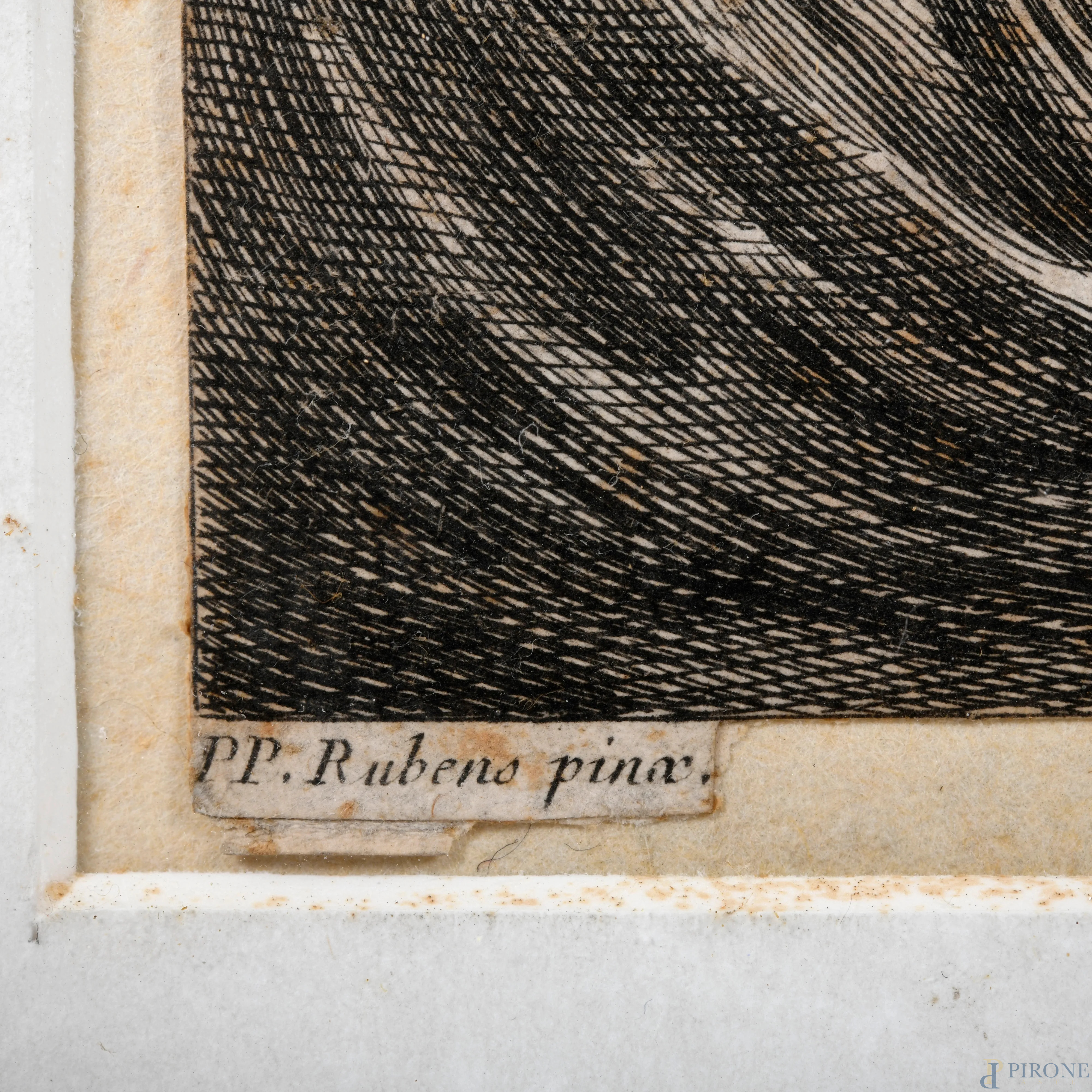Incisione da Peter Paul Rubens, XIX secolo, cm 38,5x59,5 compreso passepartout, (piegature, rifilatura, umidità)