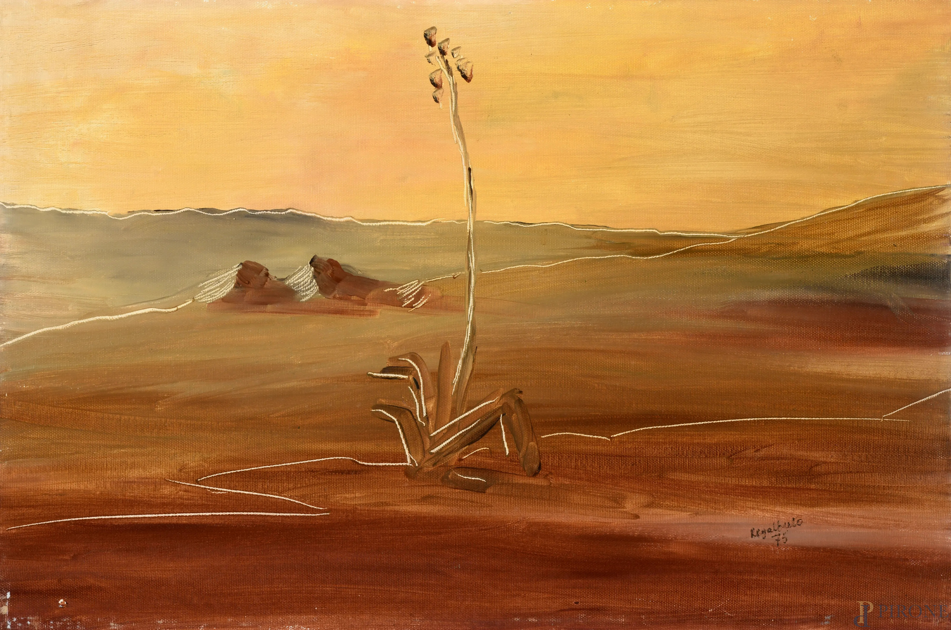 L'Agave Solitario, XX secolo, olio su tela, cm 40x60, firmato e datato "75" in basso a destra