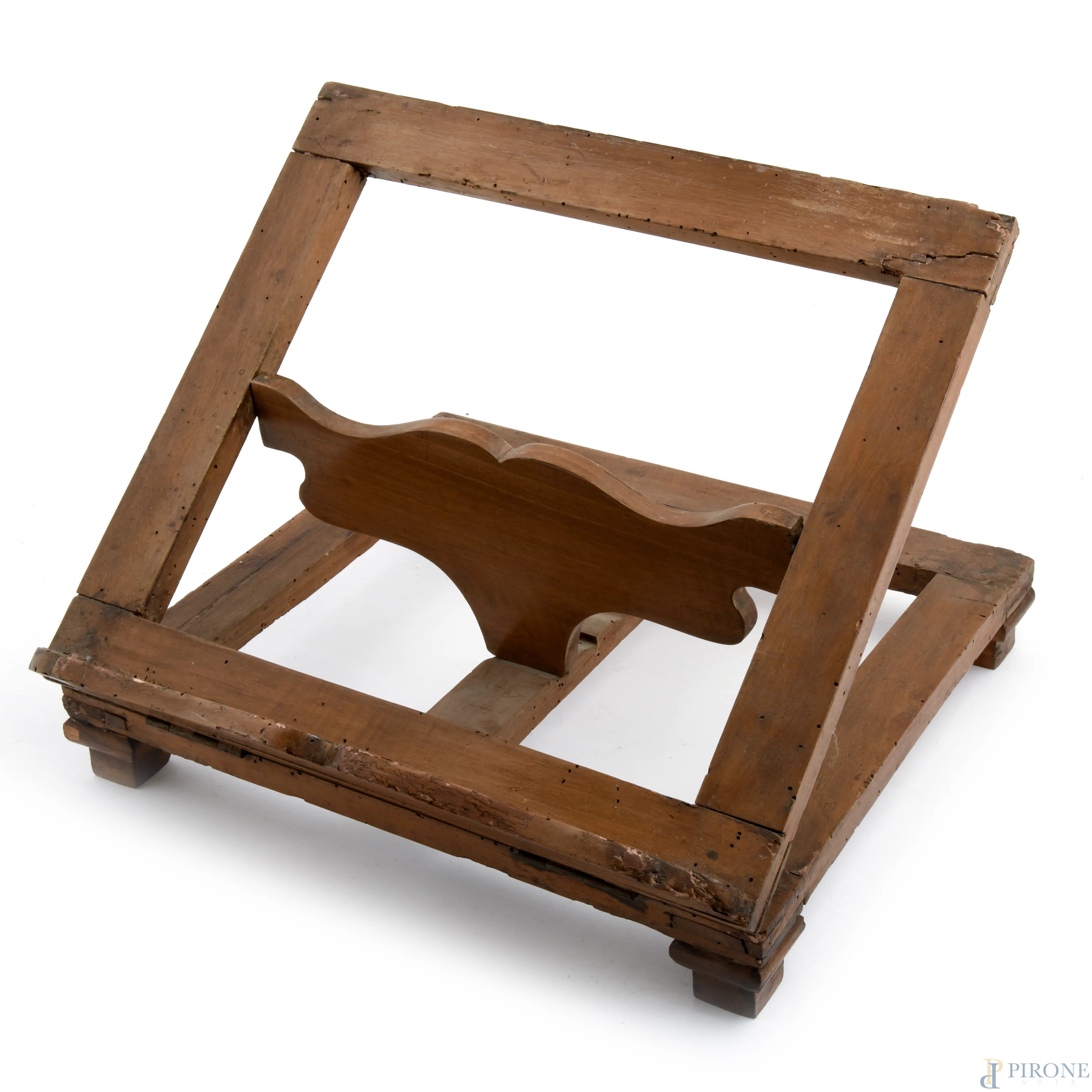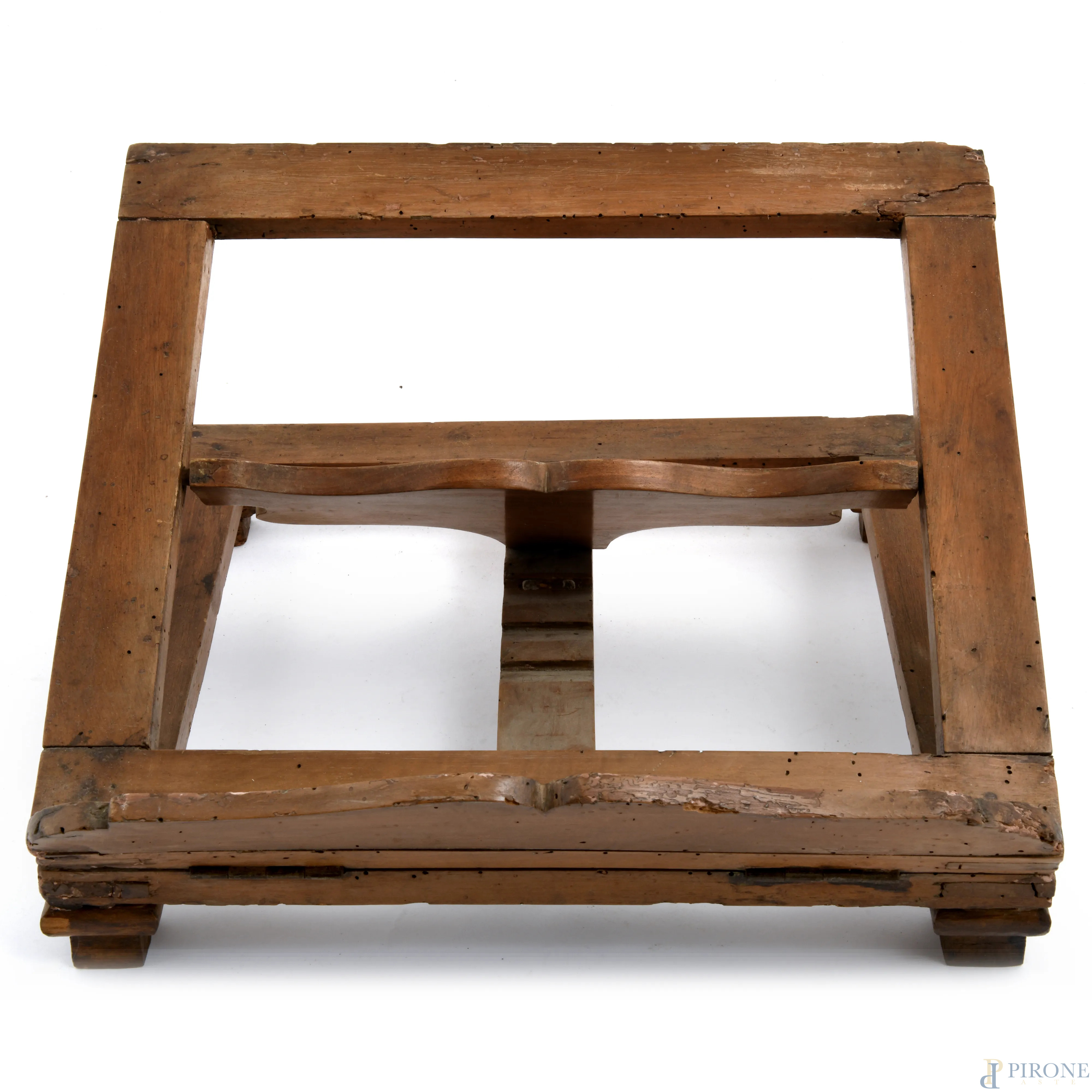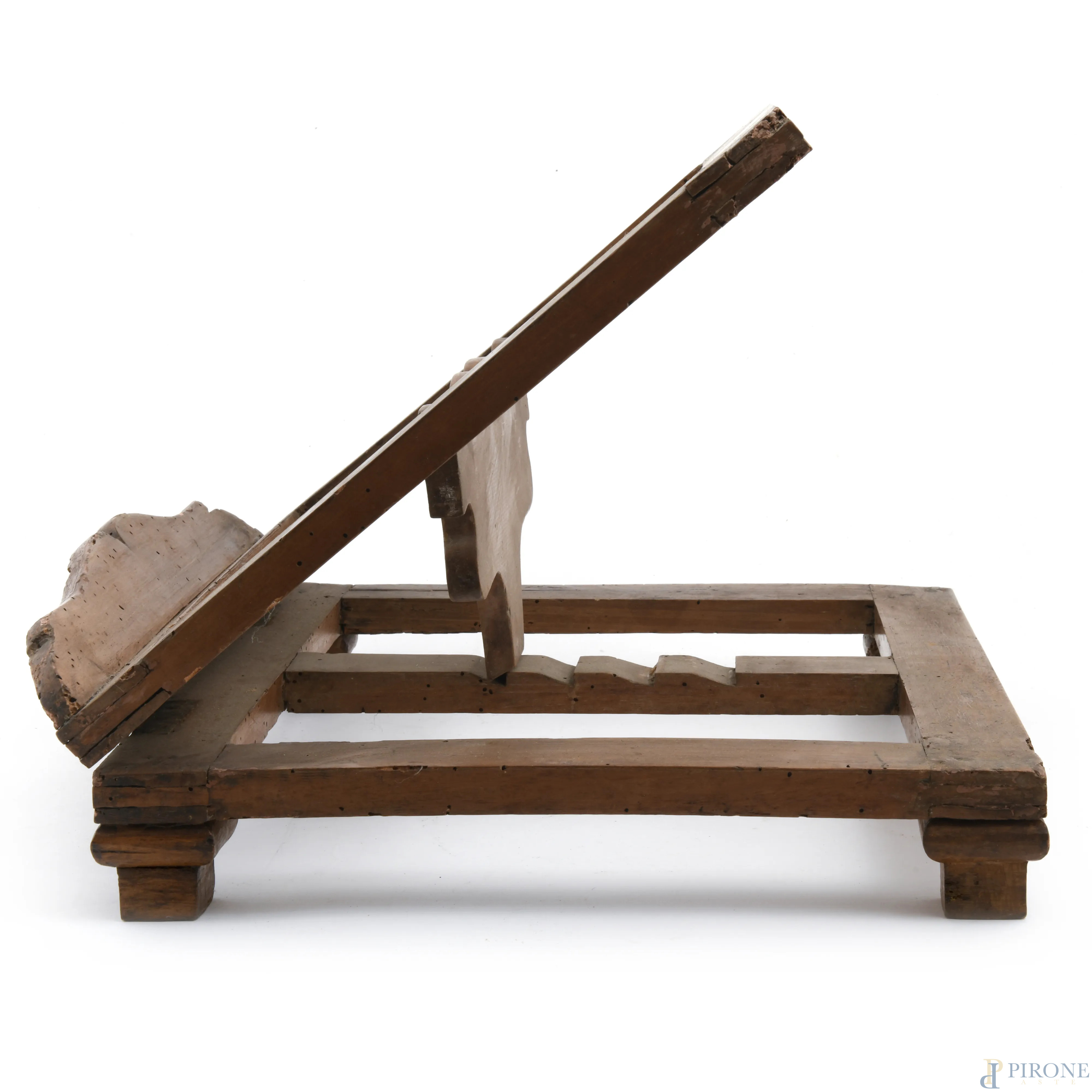 Leggio da tavolo in legno sagomato, XX secolo, cm 25x29x33 (fori di tarlo, graffi, scalfiture, segni di usura)
