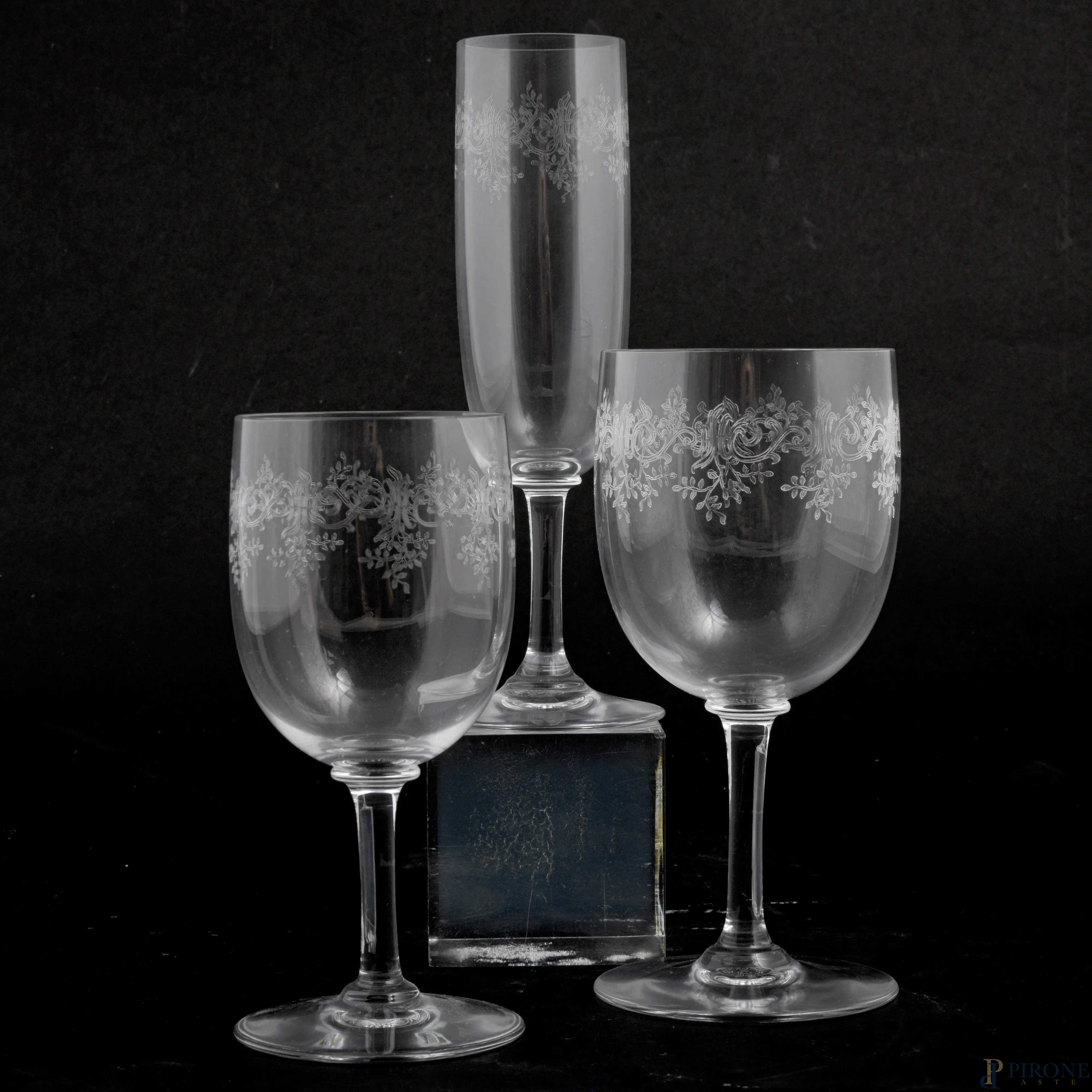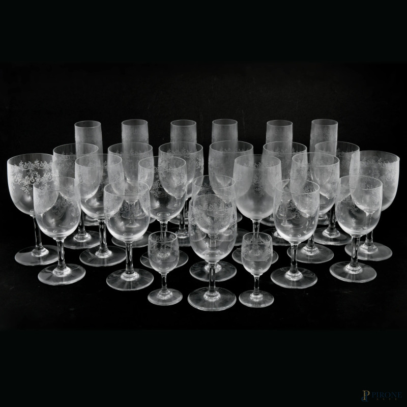 Lotto di bicchieri Baccarat con decori vegetali ad incisione