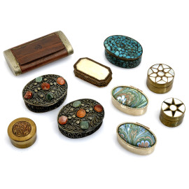 Lotto di dieci scatoline in vari materiali, misure massime cm 9x4,5