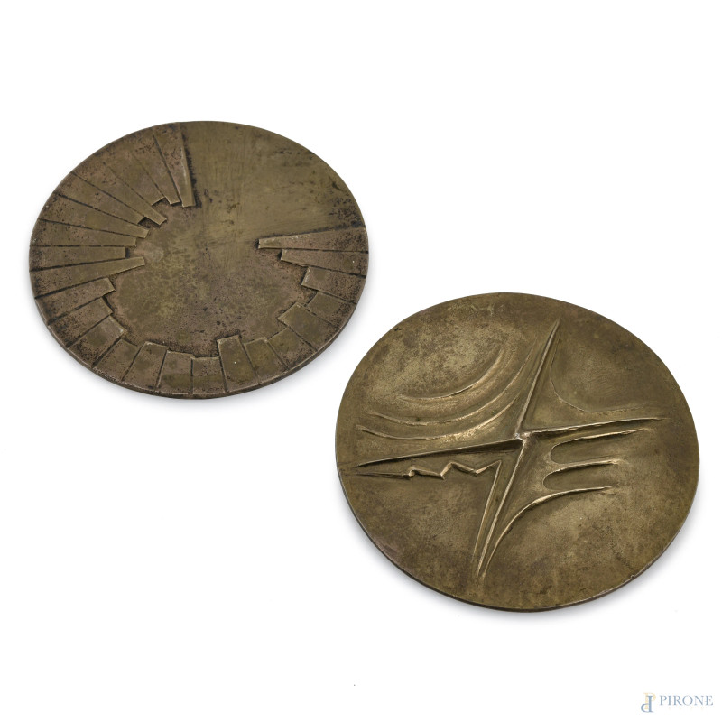 Lotto di due placche tonde in argento 800/000, diametro cm 12 peso complessivo gr 600