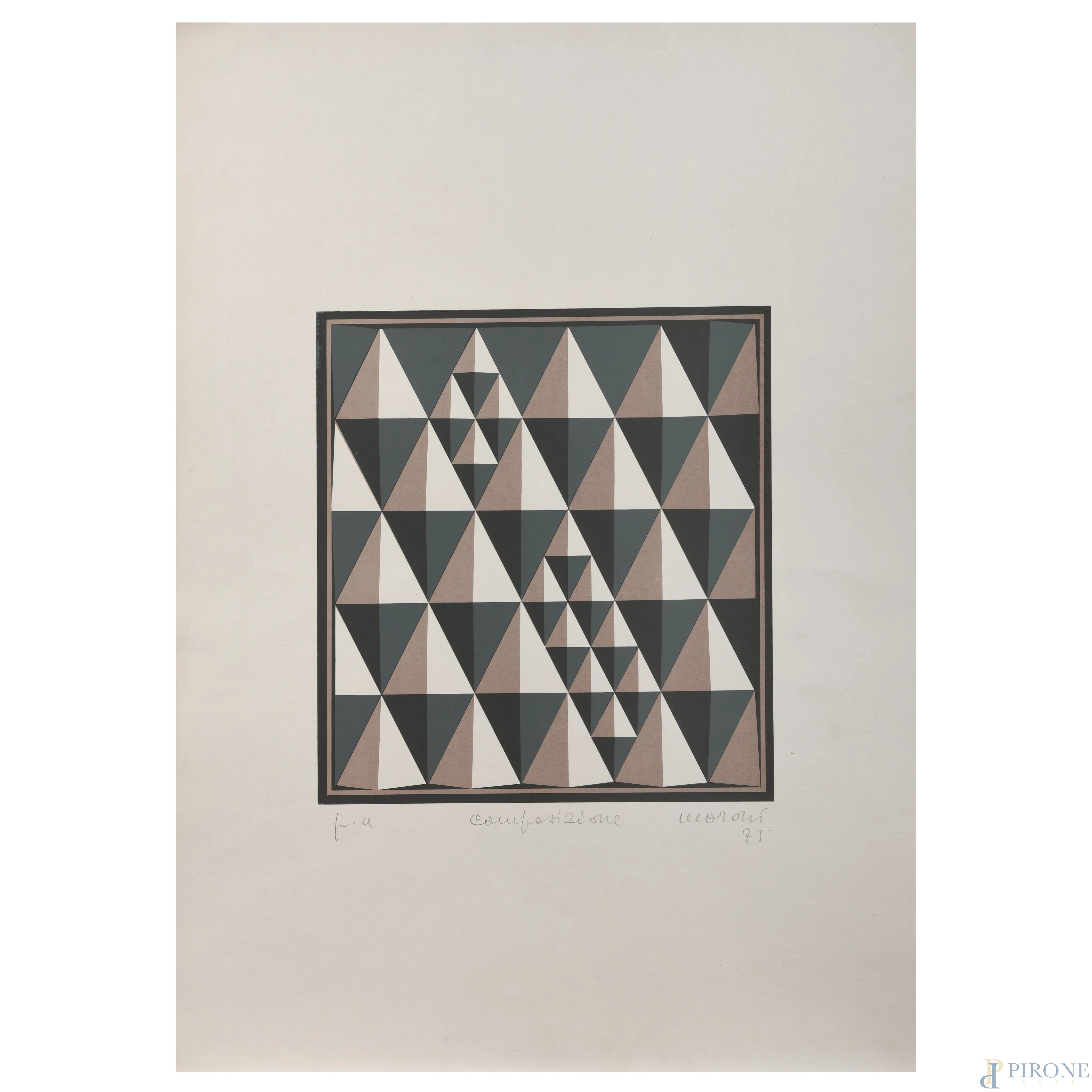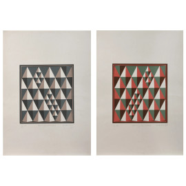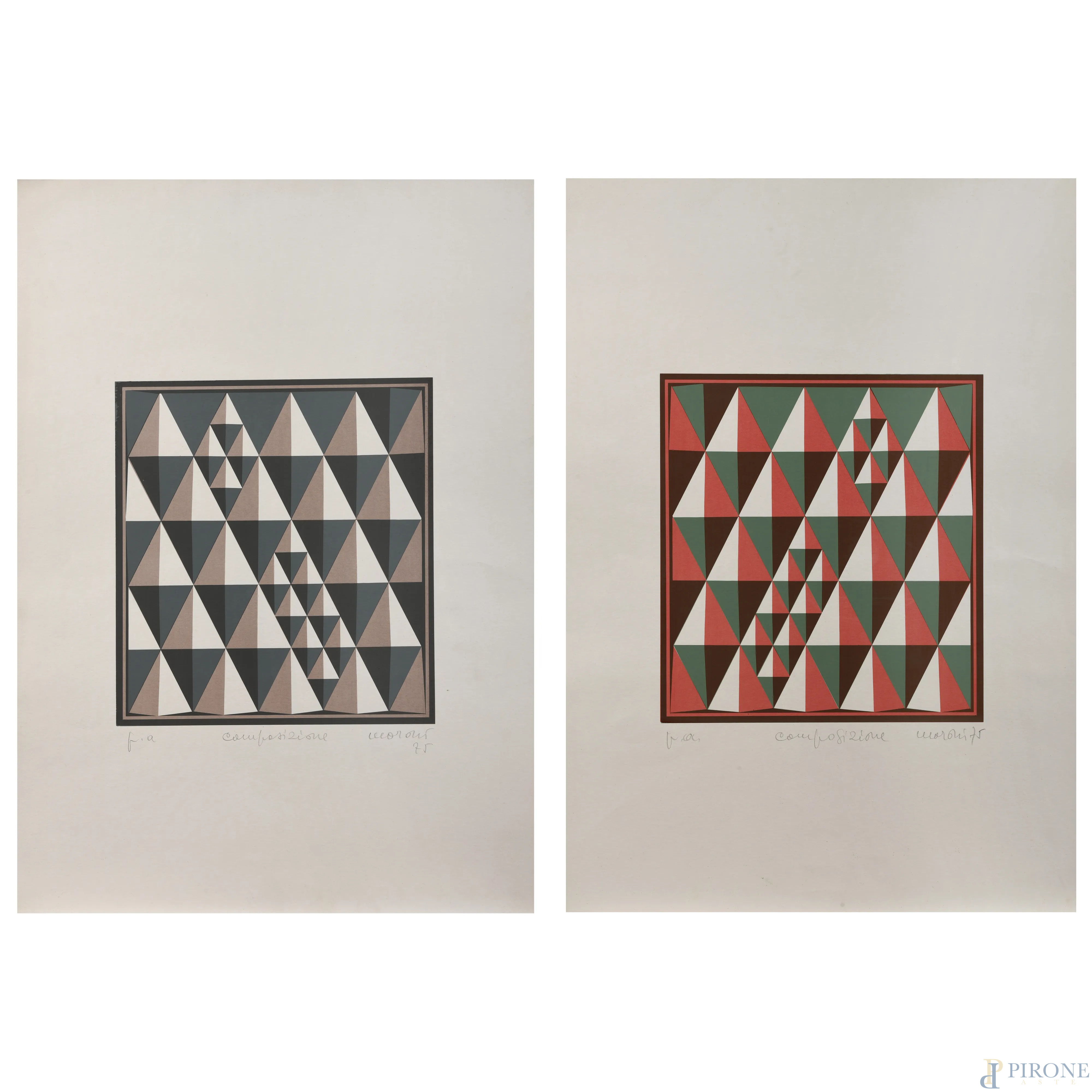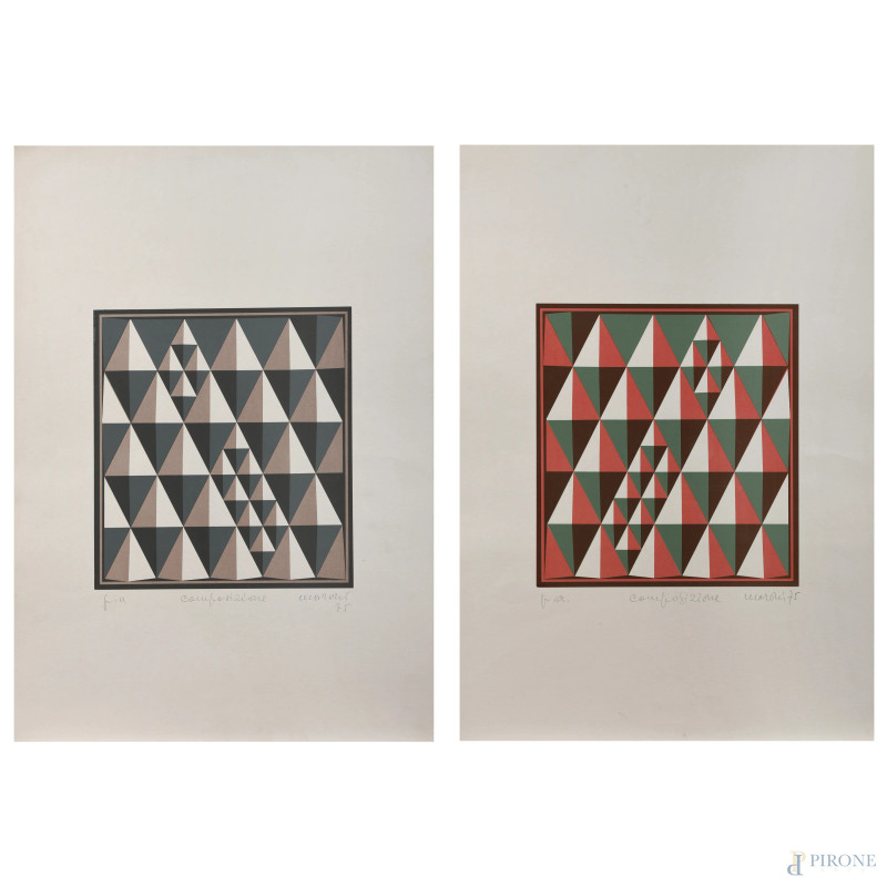 Lotto di due serigrafie, P.A., cm 70x50, firmate e datate "75" in basso a destra