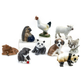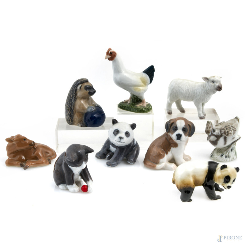 Lotto di nove sculture di animali in porcellana danese e tedesca, XX secolo, altezza massima cm 10,5