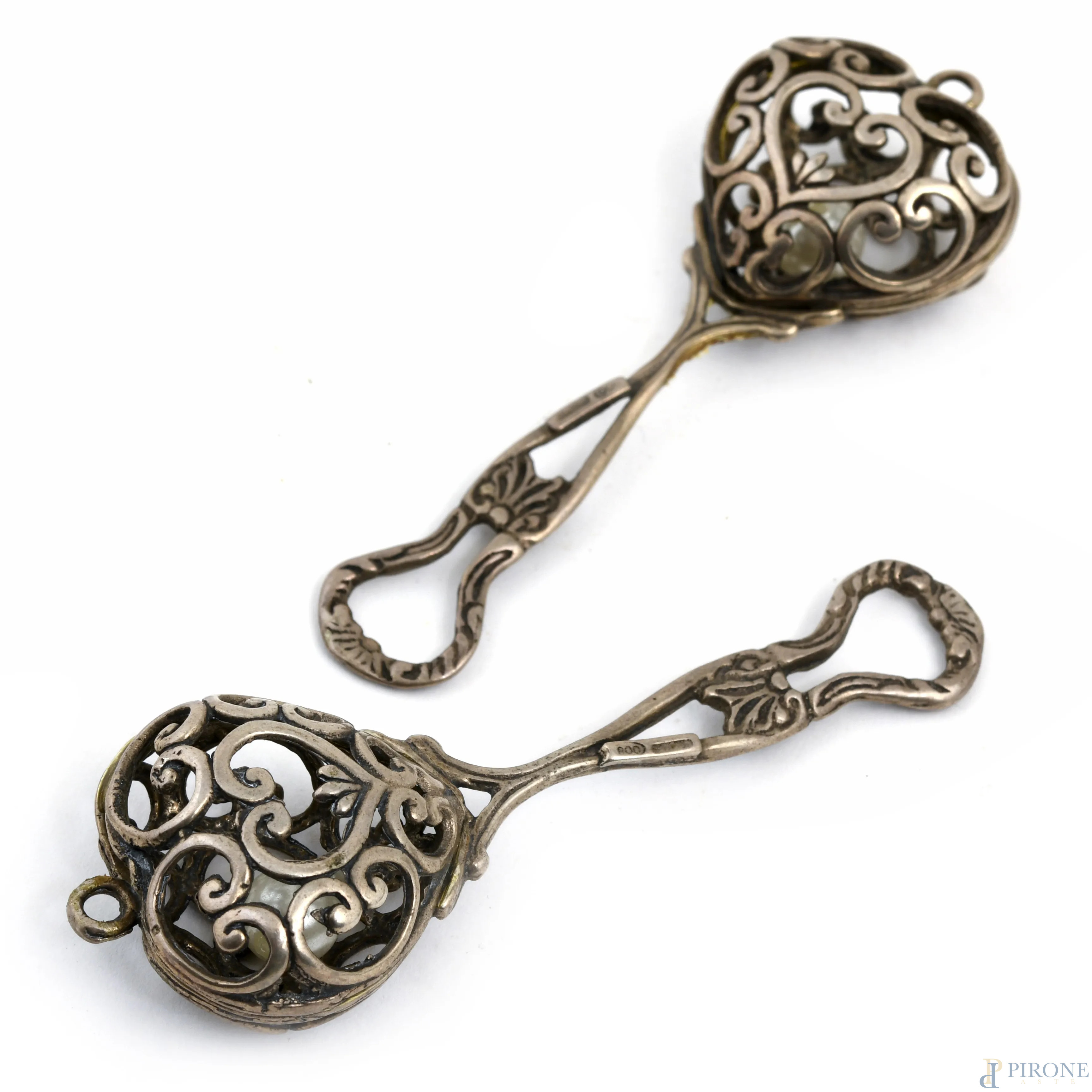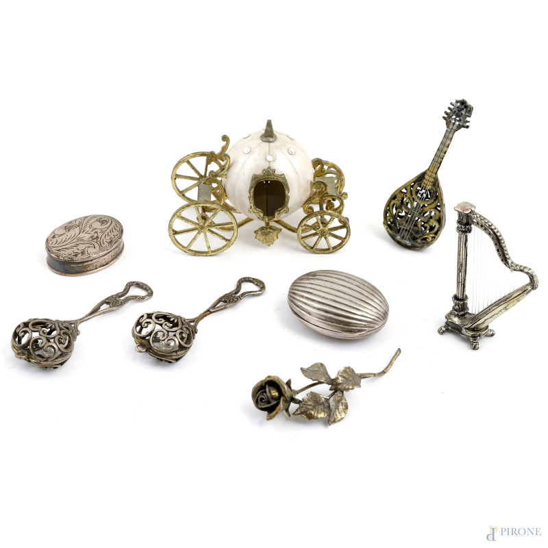 Lotto di oggetti in miniatura in argento e metallo, misura massima cm 9x7x4, peso lordo gr 20