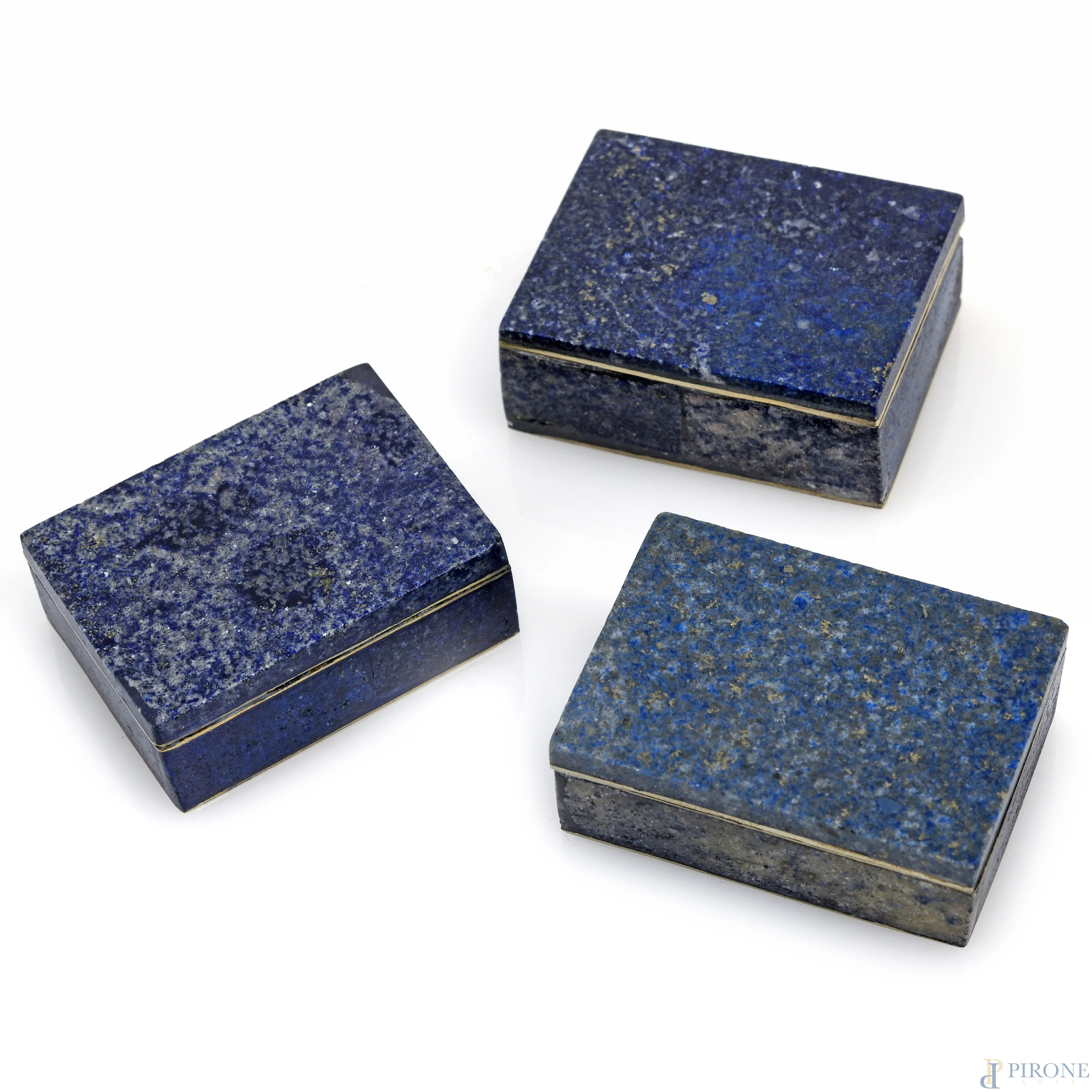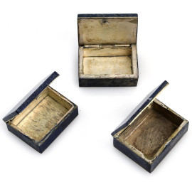 Lotto di tre scatoline in metallo rivestito in lapislazzulo, XX secolo, cm 2x5x4, (segni di usura)