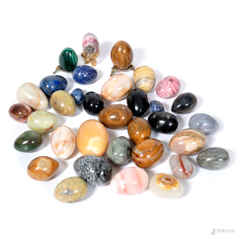 Lotto di uova in marmi e pietre, XX secolo, misure massime altezza cm 11