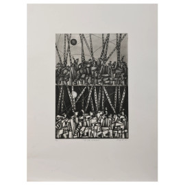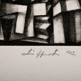 Marina Ziggiotti, Le città contrapposte, acquaforte/acquatinta, es. 3/40, cm 70x50, firmata e datata "02" in basso a destra