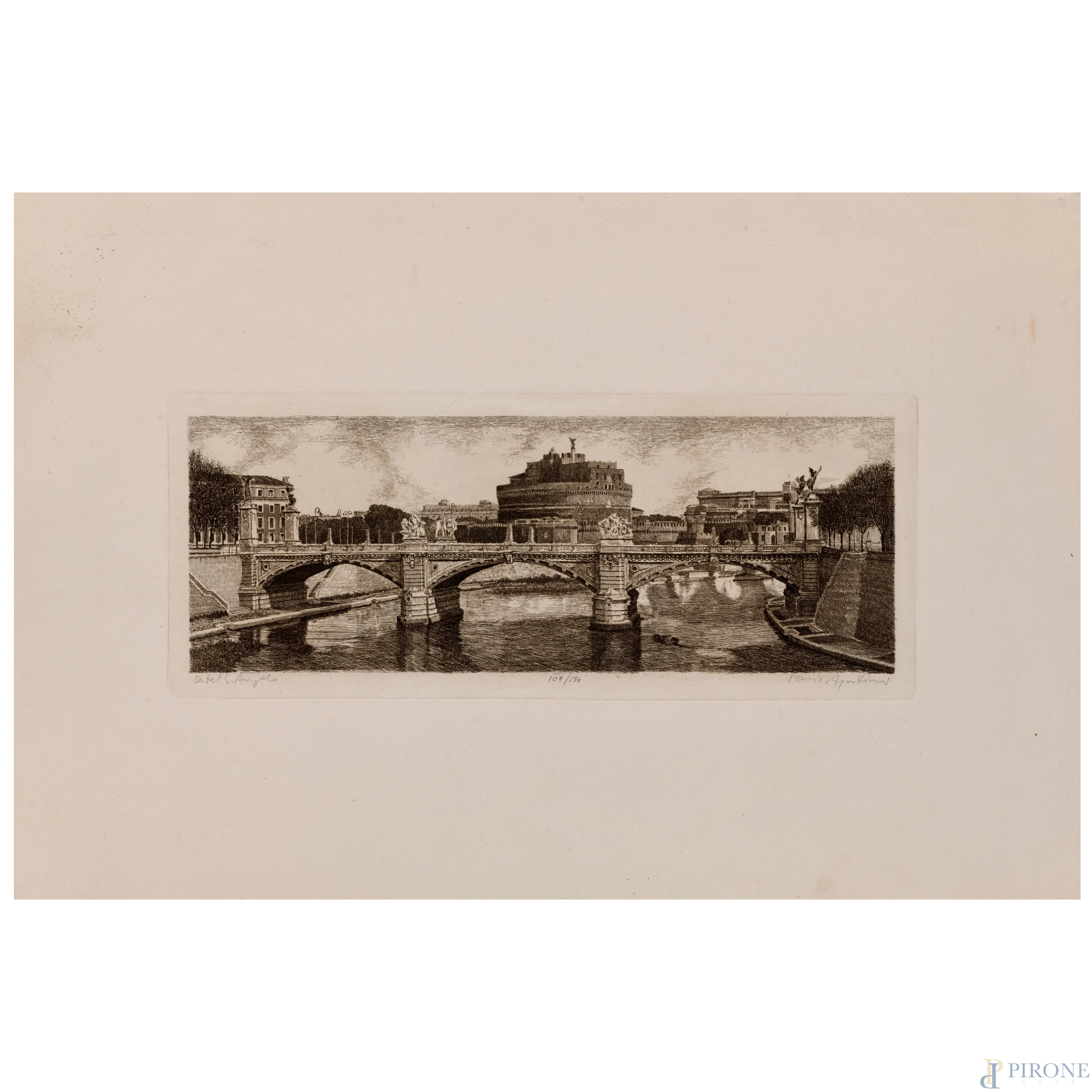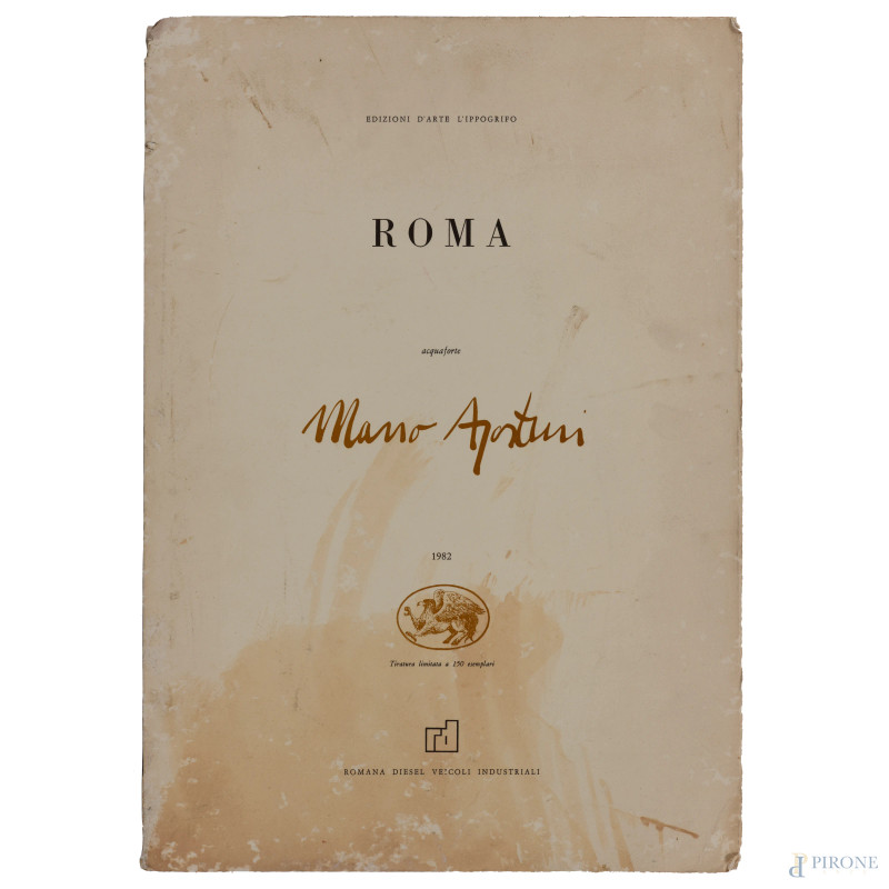 Mario Agostini, Roma, acquaforte, cm 50x33, (umidità, difetti, gore, piegature)