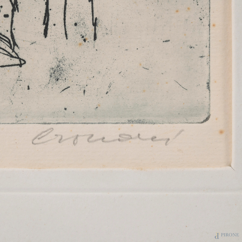 Nino Crociani, Senza Titolo, acquaforte acquatinta, P.S., cm 45x30,5 compreso passepartout, firmato in basso, entro cornice