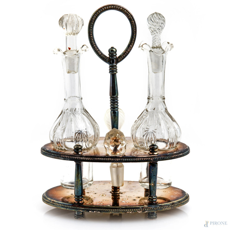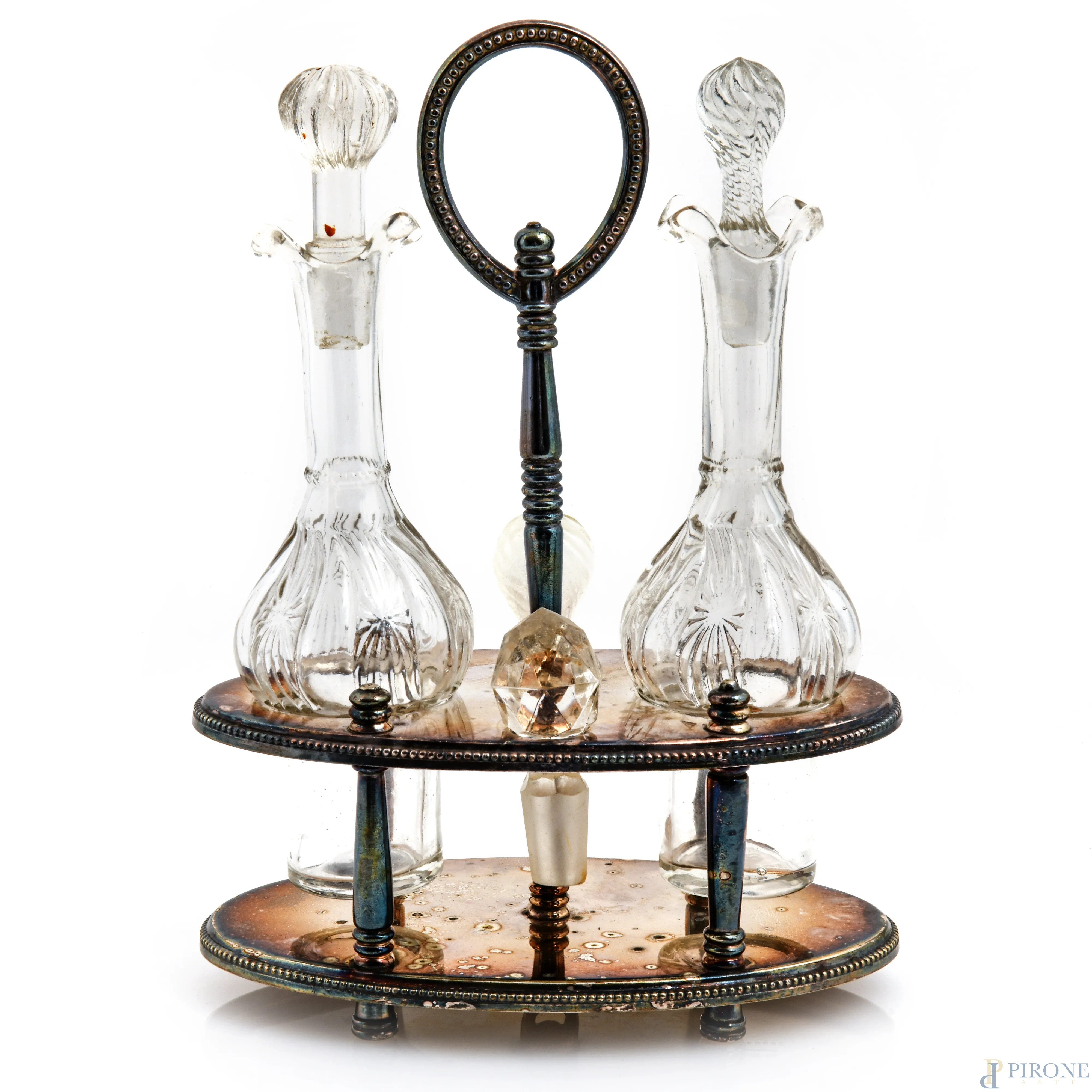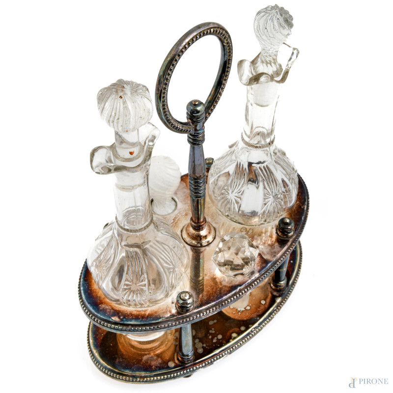 Oliera in cristallo e metallo Christofle, XX secolo, cm 26x18x11, (difetti, mancanze)
